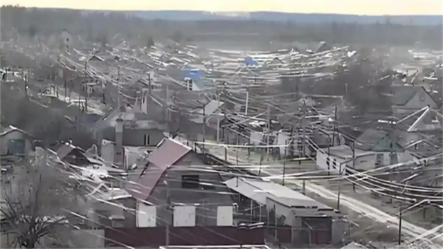 不仅如此,乌克兰还随即放出一段令人心惊的视频,画面中,俄乌将电子战强度拉到顶格,超过300万架的海量光纤制导无人机投入战场,而它们在完成自杀式攻击或失去目标后,遗留下的光纤,密密麻麻如同“蛛丝”一样覆盖着前线城市。